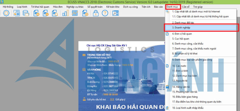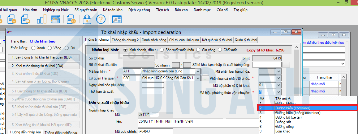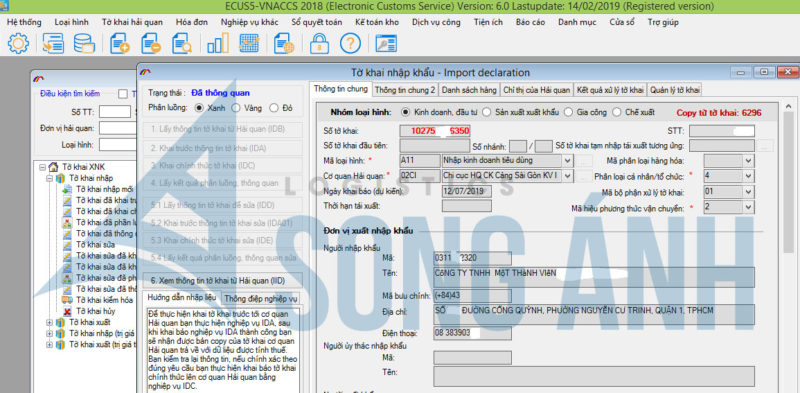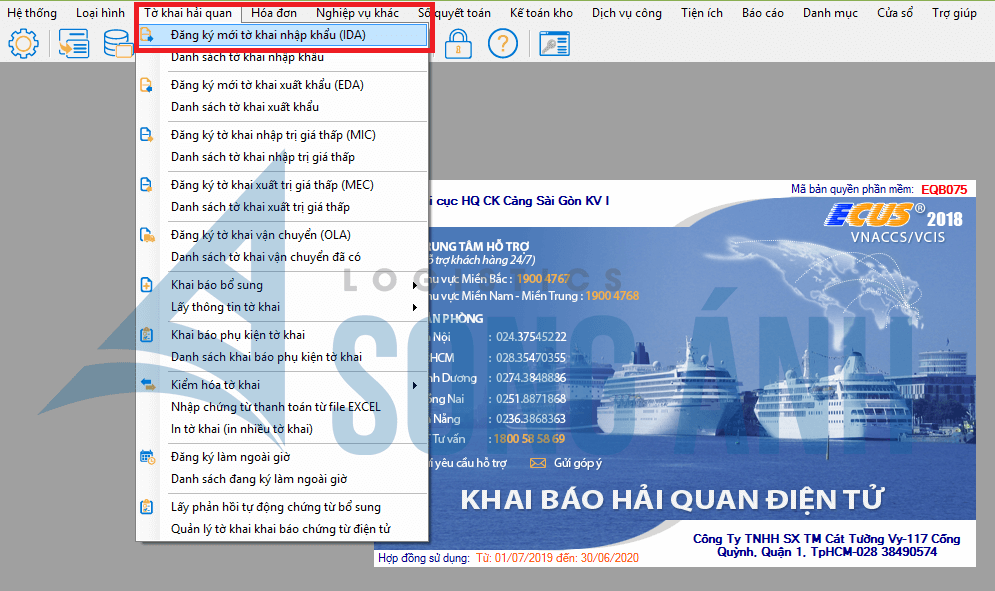 Sau khi vào được phẩn mềm, chúng ta bắt đầu việc khai báo tờ khai hải quan cho một doanh nghiệp cụ thể như sau.