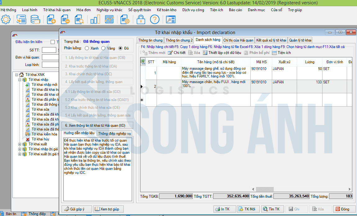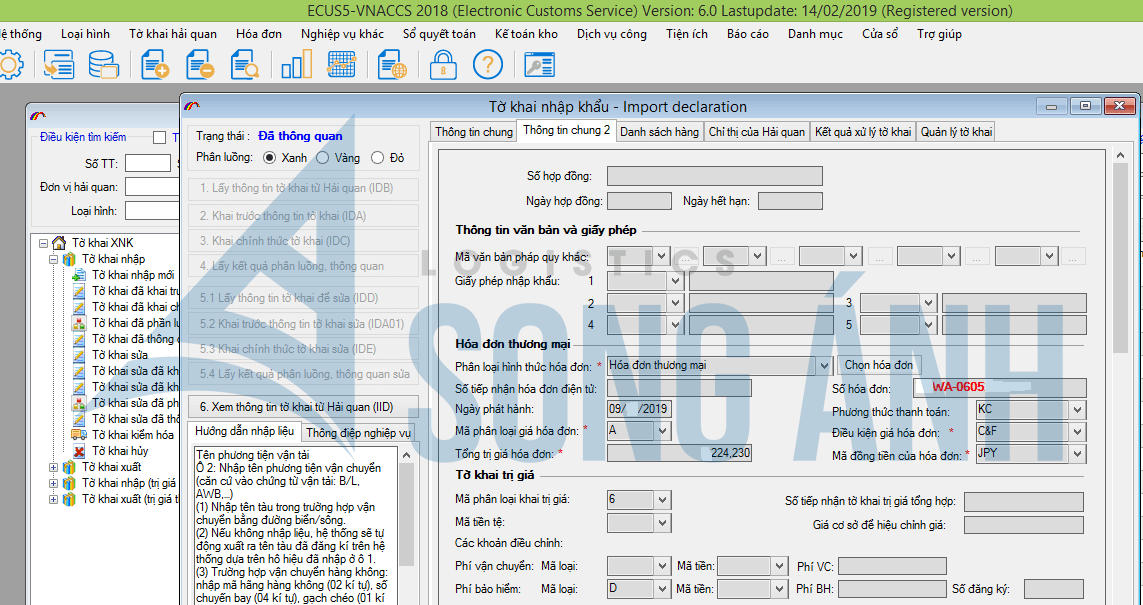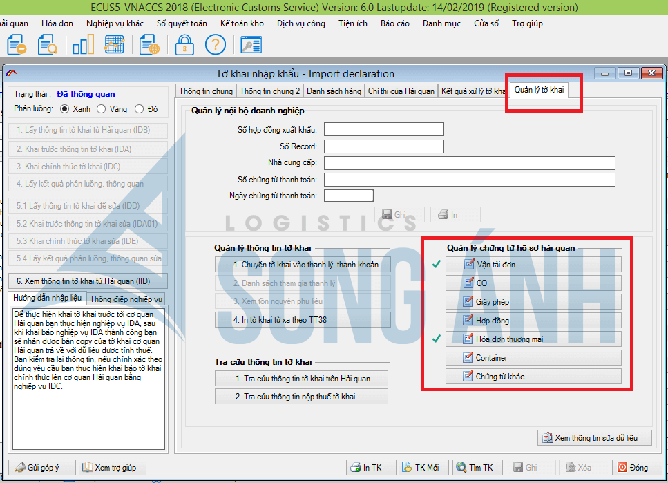 Sau khi thiết lập xong, bạn bắt đầu vào khai báo tờ khai hải quan.