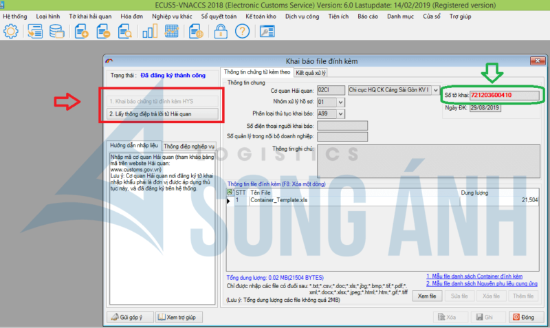 Thông tin đính kèm: thông thường đối với hàng nhập container, phần thông tin đính kèm sẽ khai báo số tờ khai HYS. Trong trường hợp bạn có khai HYS thì bạn khai như sau: