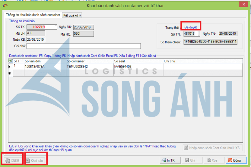 Sau khi ghi xong bạn chọn “KHAI BÁO” > tiếp theo chọn “XNKB” để trạng thái là “ĐÃ DUYỆT” thì mới được gọi là khai báo thành công.