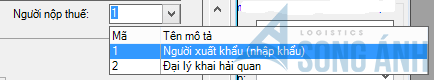Người nộp thuế: có 2 sự lựa chọn, người nhập khẩu trực tiếp nộp thì bạn chọn số 1, hoặc thông qua đại lý hải quan nộp thì bạn chọn số 2