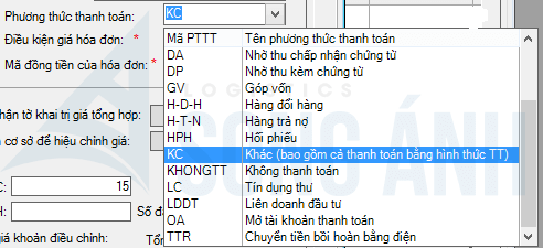 Bạn sổ dấu mũi tên bên cạnh để lựa chọn phương thức thanh toán cho phù hợp với bộ chứng từ.