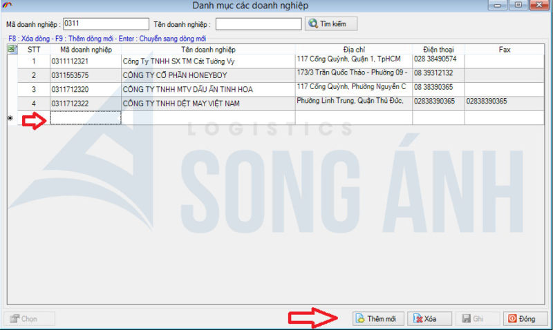 Bạn chọn “THÊM MỚI” > sau đó nhập thông tin doanh nghiệp mới vào, thông tin cần nhập gồm : Mã số thuế doanh nghiệp, Tên doanh nghiệp, Địa chỉ và Số điện thoại, số fax (nếu có)