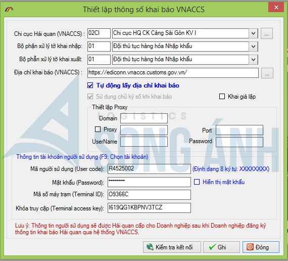 BƯỚC 2 : THIẾT LẬP THÔNG SỐ VNACCS